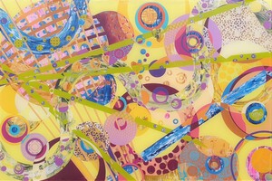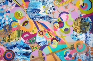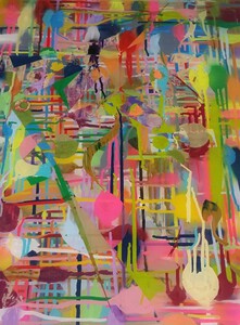 2020acrylverf, inkten met een rakel aangebracht.